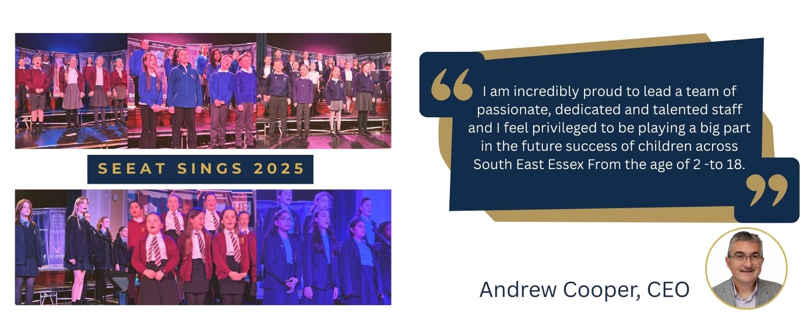 The Trust Leader of SEEAT is Andrew Cooper, an education veteran with a strong track record of raising standards in schools for 36 years.